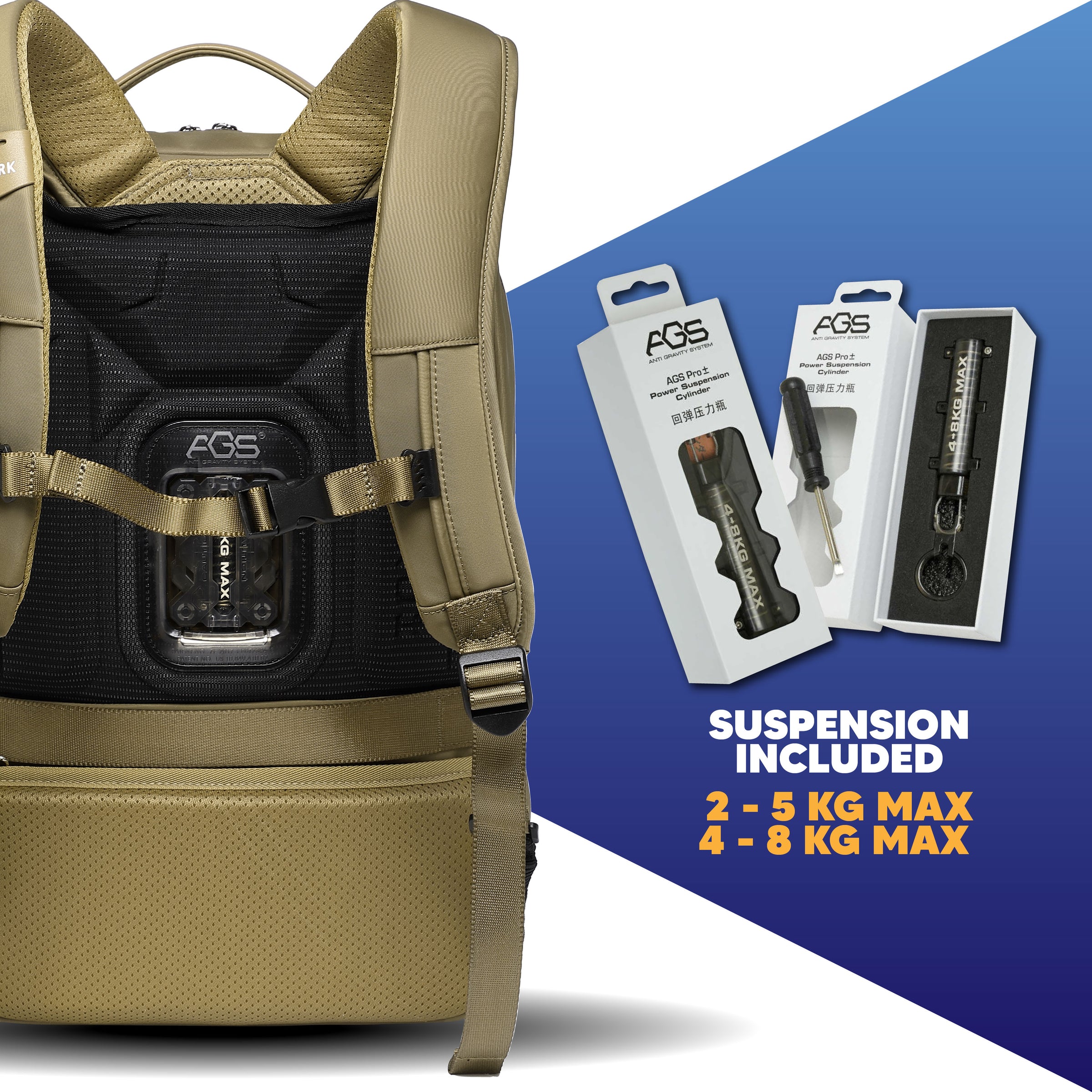 Interchangeable suspension modules (2–5 kg & 4–8 kg max capacity) allow you to fine-tune support based on your daily load — ensuring optimized performance for work, travel, or study.