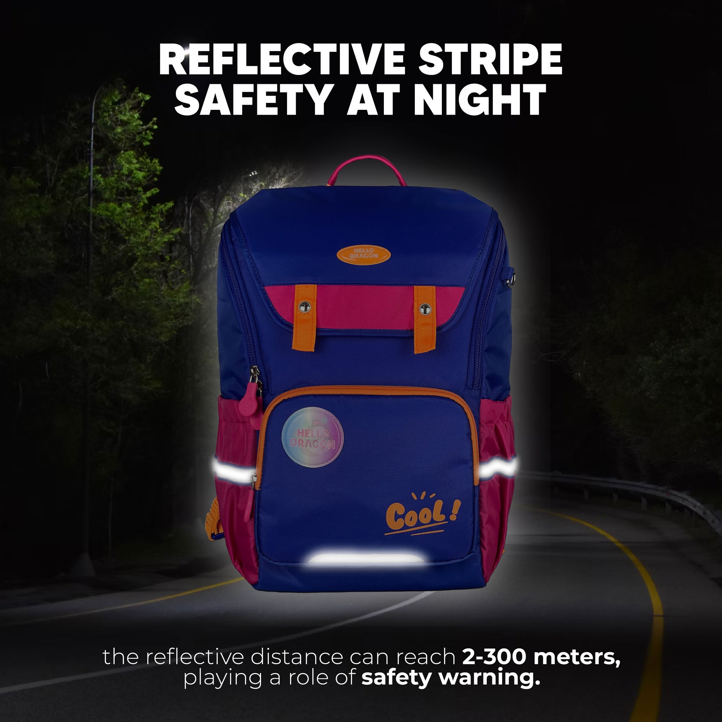 Integrated reflective strips positioned on all sides enhance visibility up to 300 meters, offering added safety during early-morning and evening walks.