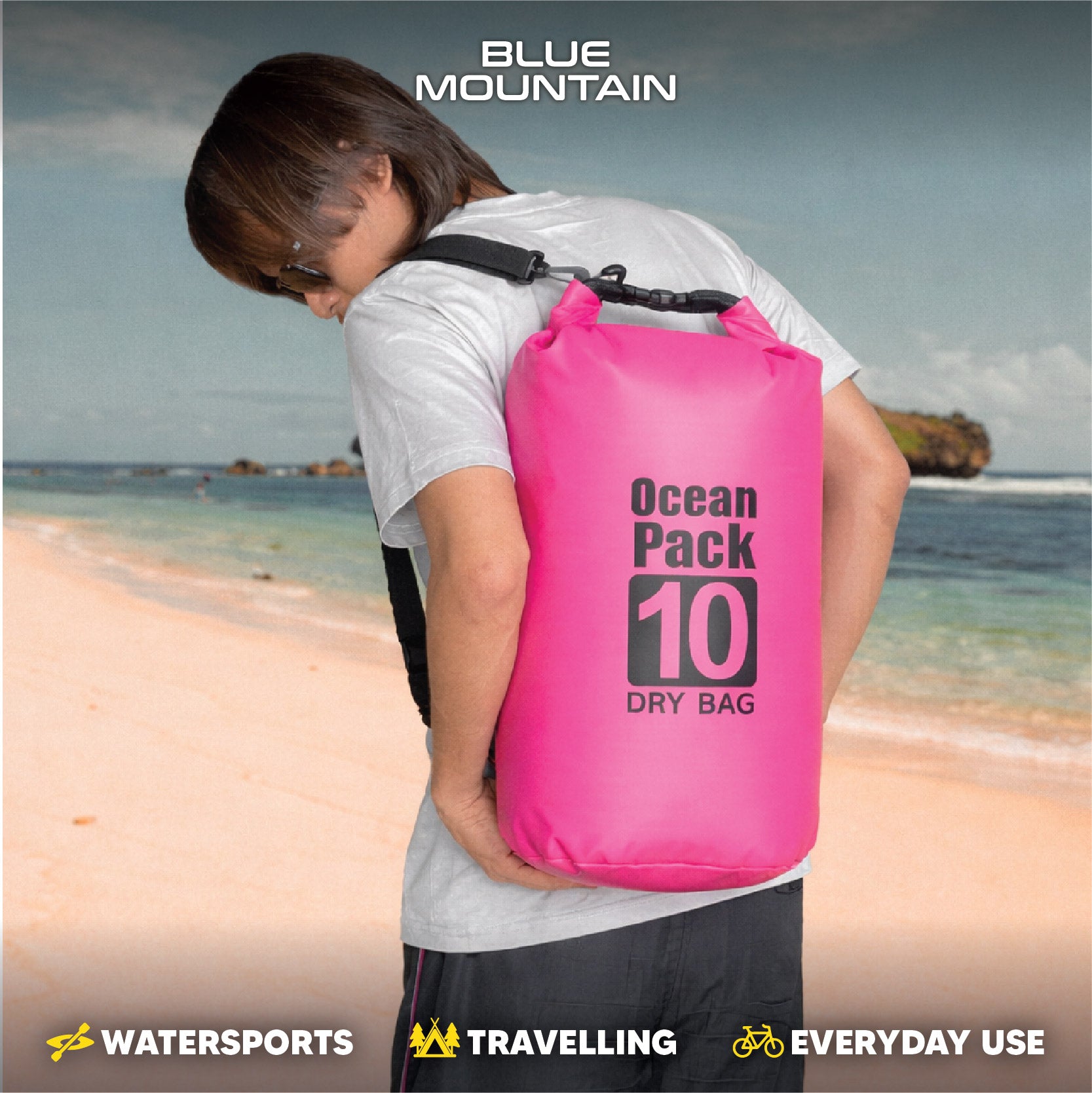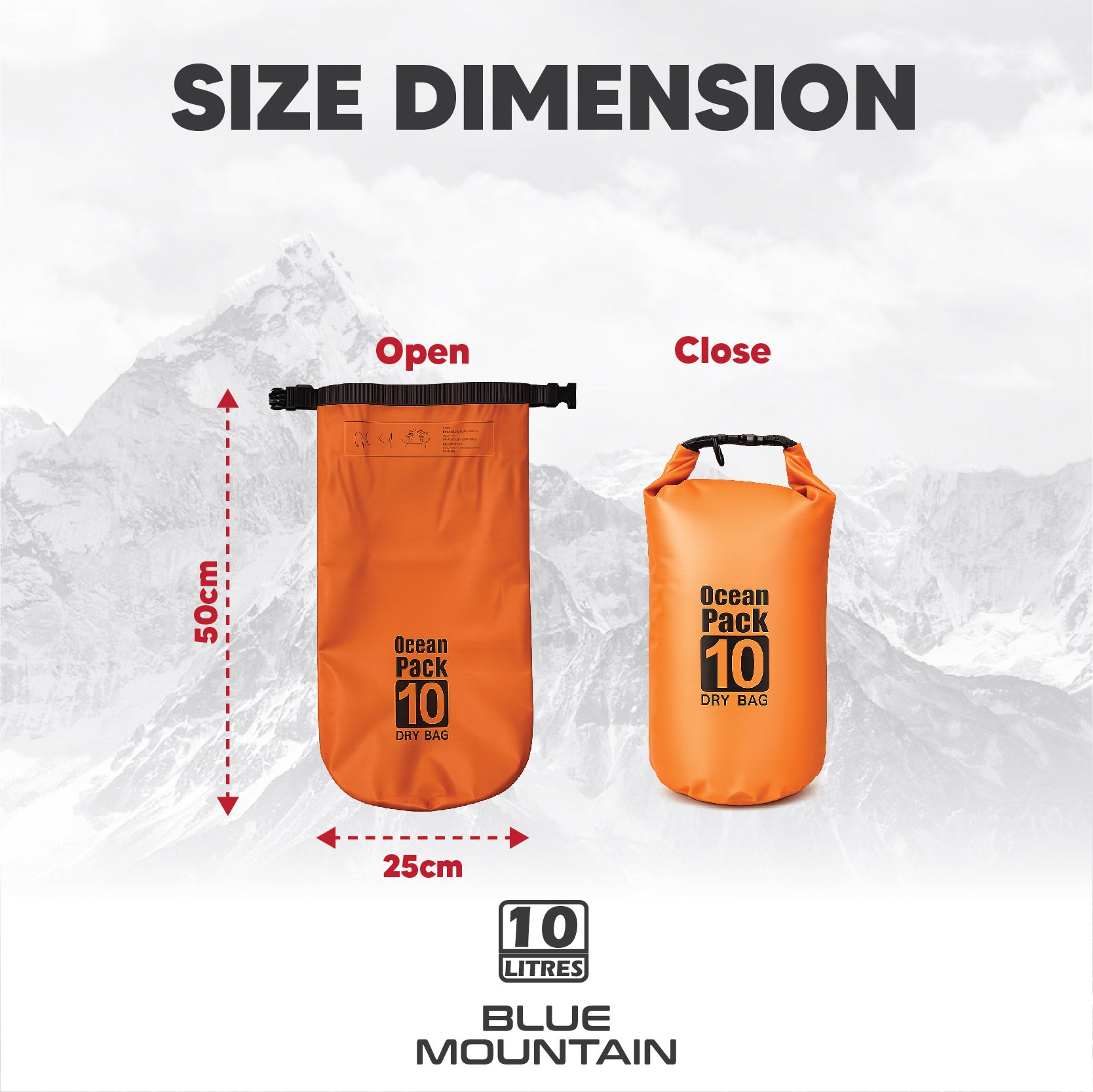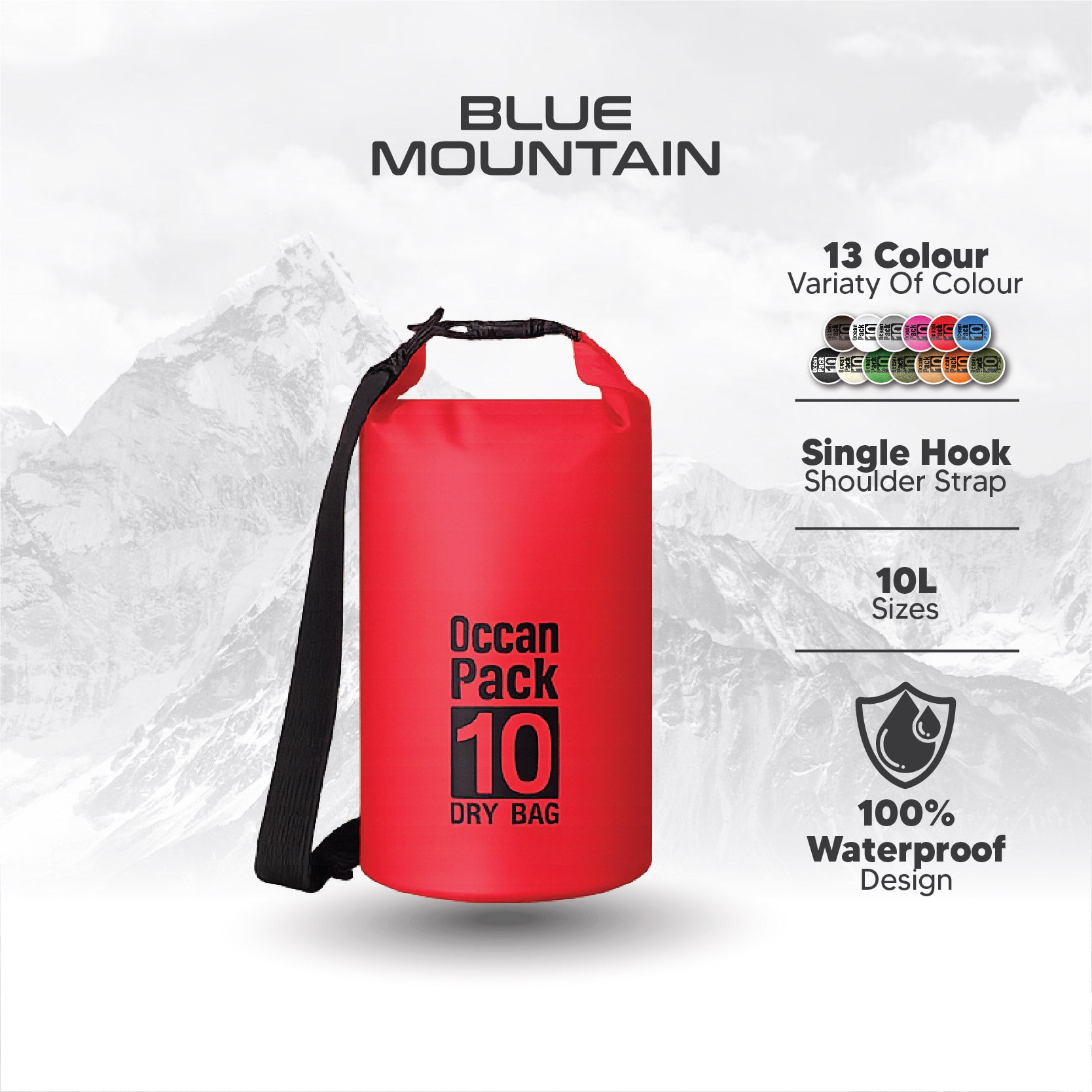 Blue Mountain 10L Dry Bag Outdoor Sports Splashproof Travel Sling Backpack Adjustable Shoulder Strap
