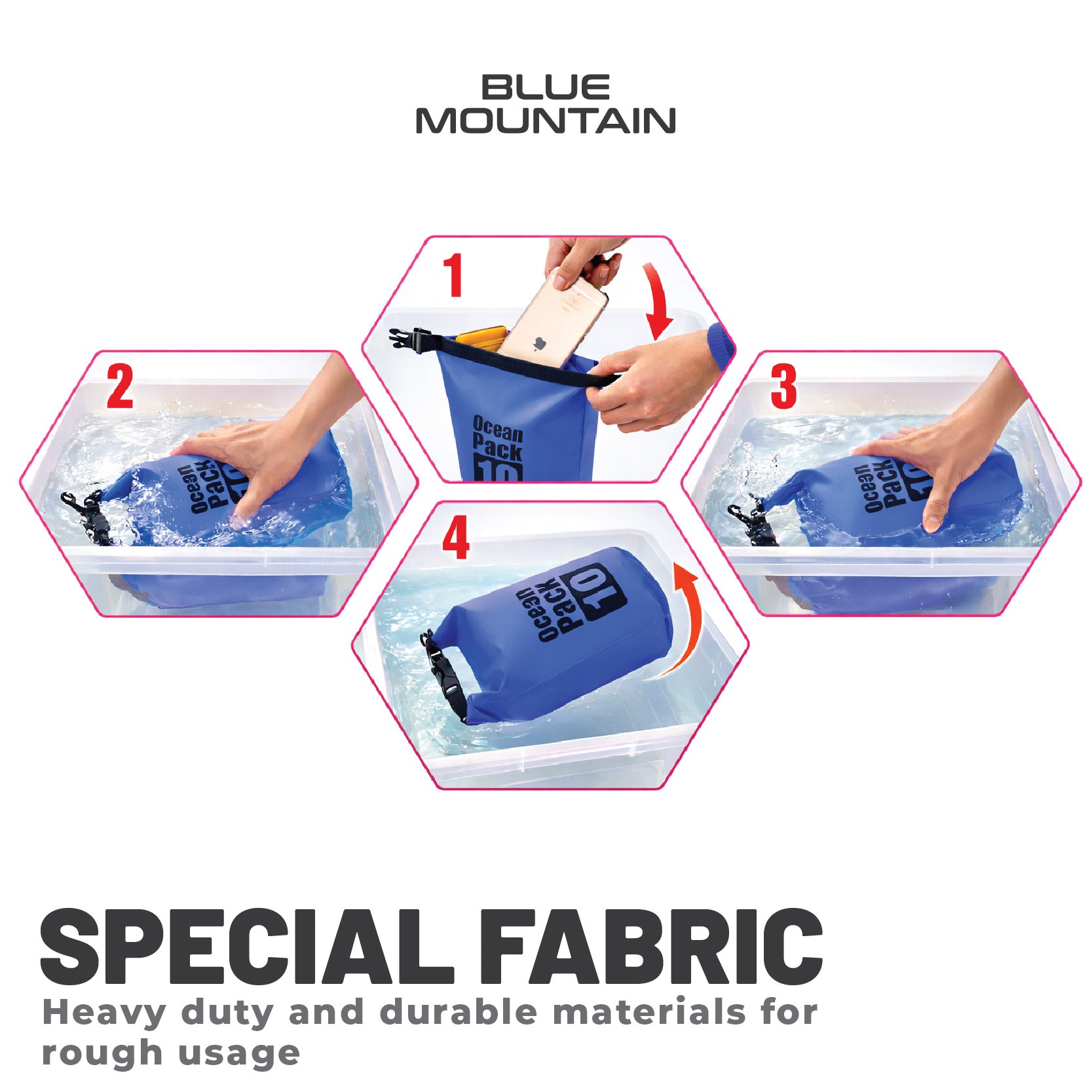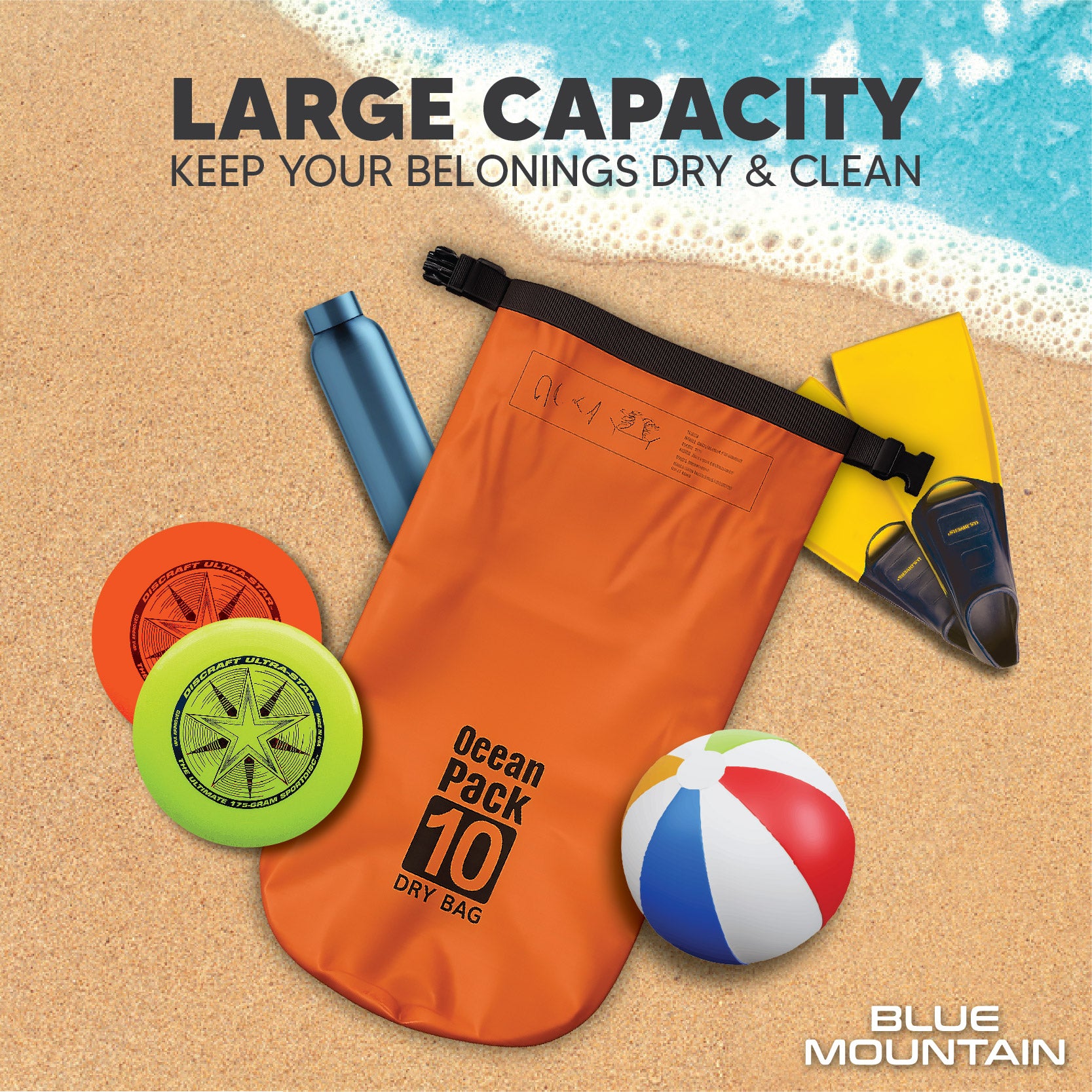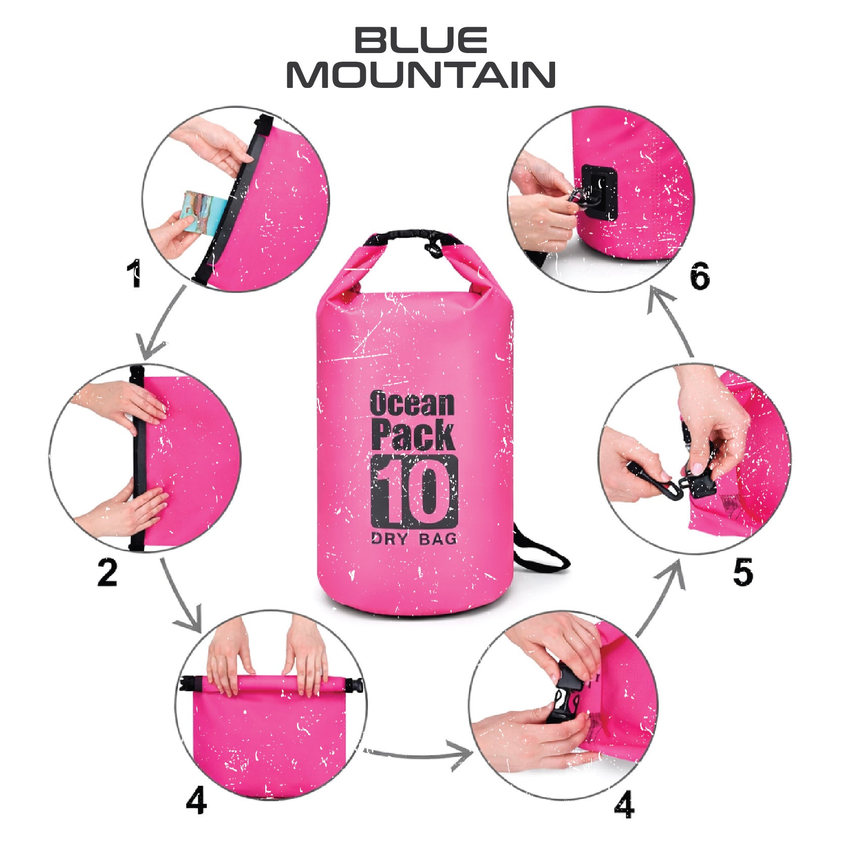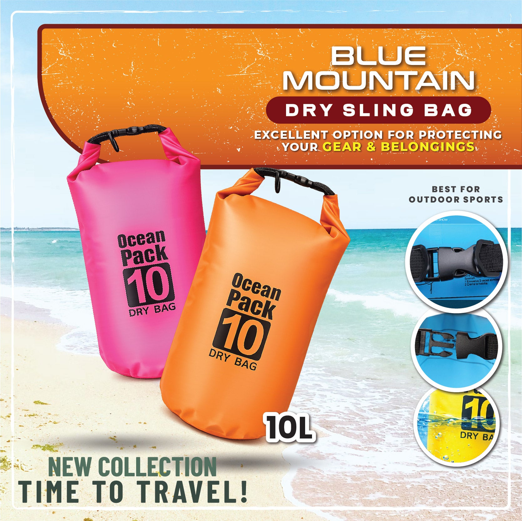 Blue Mountain 10L Dry Bag Outdoor Sports Splashproof Travel Sling Backpack Adjustable Shoulder Strap